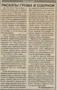 Во время инспекций 50-х годов неоднократно отмечены случаи перелива морской воды на территорию метеоплощадки и прилегающую территорию во время сильных западных ветров. Кроме этого, во время разрушительного землетрясения 5 ноября 1952 года, вызвавшего катастрофические волны цунами высотой до 15 метров, практически стершего с лица земли город Северо-Курильск и унесшего более 2000 жизней, в поселке Озерновский также наблюдались волны высотой до 5 м (высота метеоплощадки на тот момент составляла 5 м над уровнем моря, а метеоприборы были размещены на расстоянии всего 70 м от уреза воды Охотского моря).